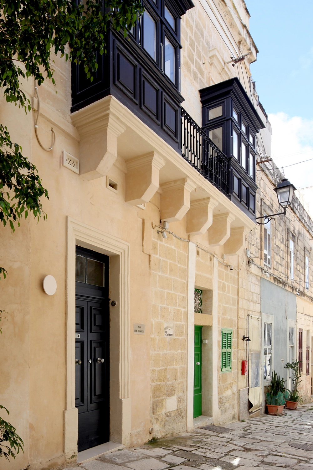 A hospitality conversion in Cospicua, this studios-only guesthouse explores how architectural constraints and historic context inform a design language rooted in materiality and temporal layering.