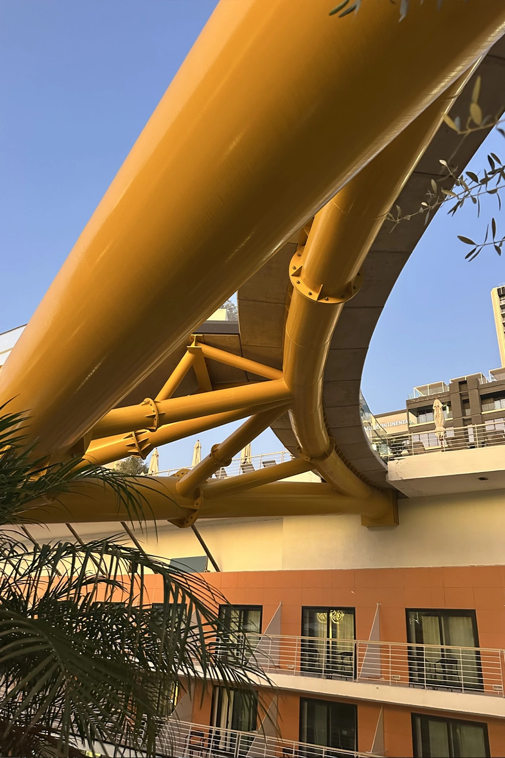 Commissioned as part of the Eden Leisure Group’s redevelopment of the Voco Hotel in St Julian’s, the bridge connects three distinct destinations: the Intercontinental Hotel pool deck, the Voco Hotel’s Level 4 public piazza and restaurant, and the public lift stop at Level 6. By resolving these complex multi-level connections in one seamless gesture, the bridge has become both a structural innovation and an urban landmark.