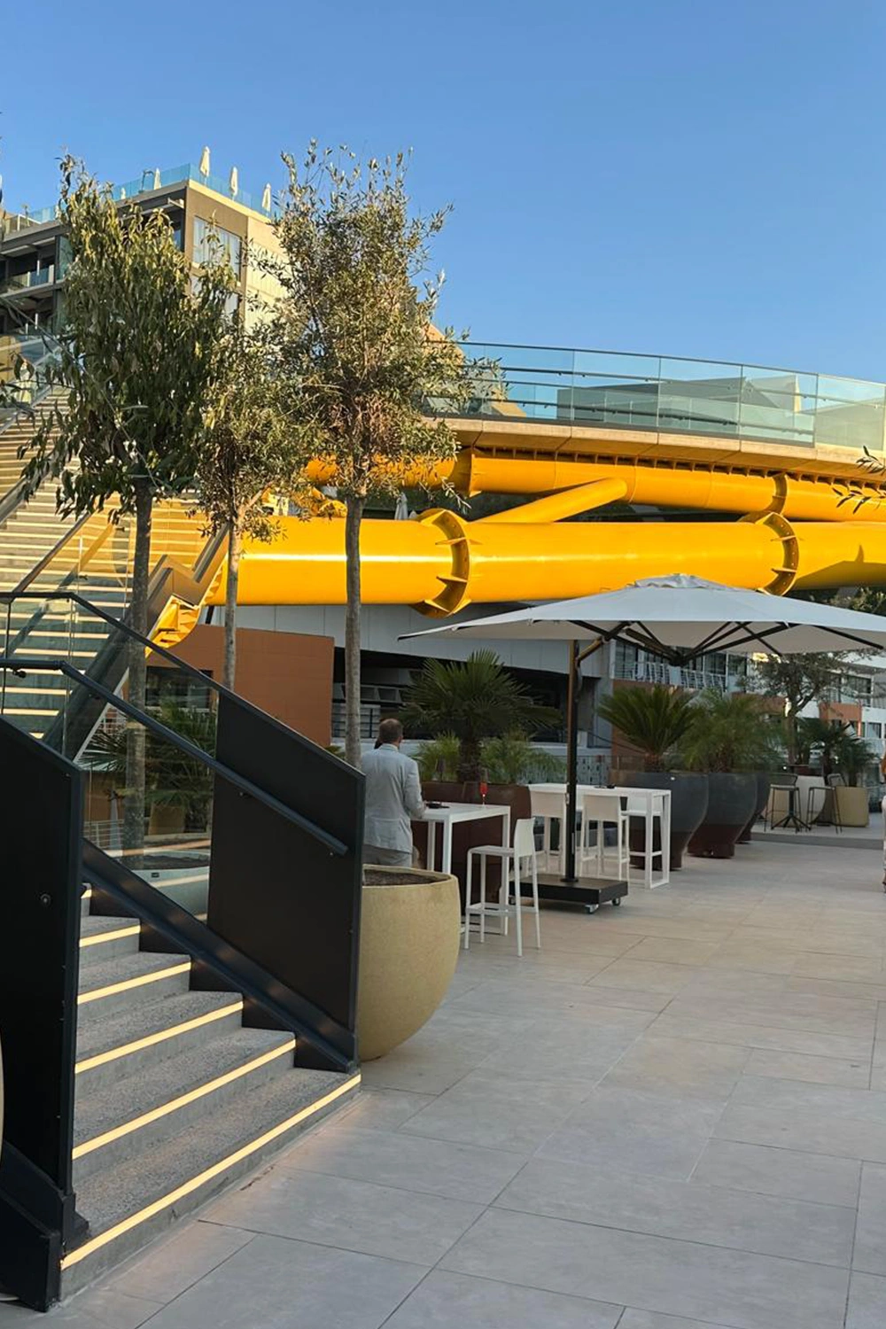 Innovation extended into construction. The entire steel superstructure was installed in just one day, a feat enabled by precision off-site fabrication and meticulous logistical planning in one of Malta’s busiest entertainment districts. The deck and stairs, executed in precast concrete, further accelerated assembly, ensuring high quality with minimal disruption to hotel and public operations.